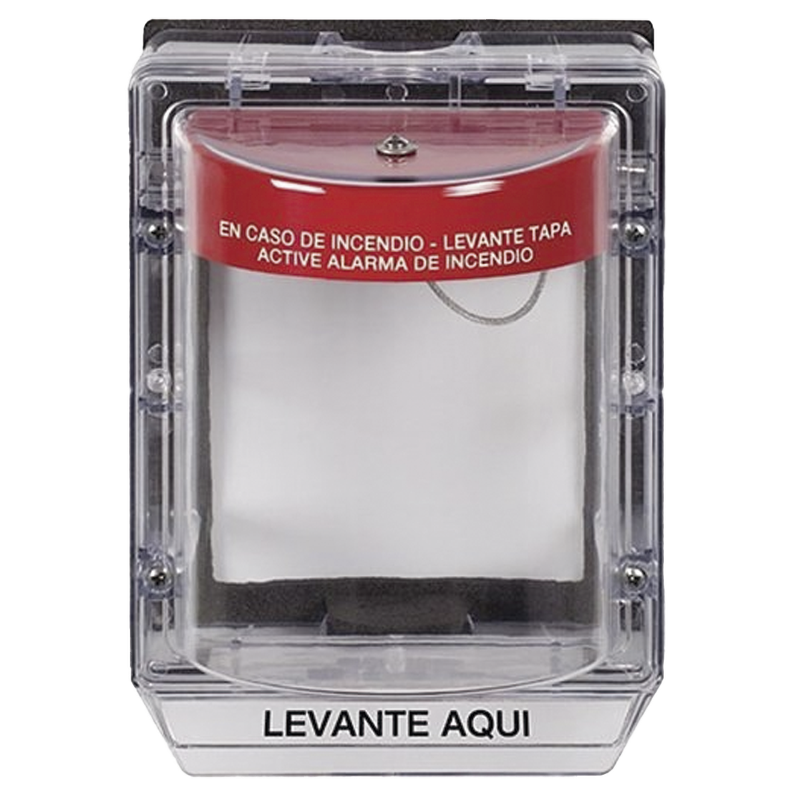 Cubierta Protectora de Policarbonato Serie Stopper II® , Con Bocina, Con Espaciador, Montaje Empotrado, Etiqueta en Español, IP54