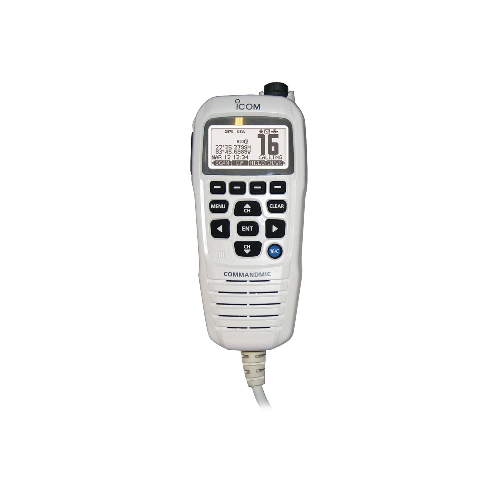 Micrófono comando color blanco y pantalla en fondo blanco para serie IC-M510, IC-M424G e IC-M605
