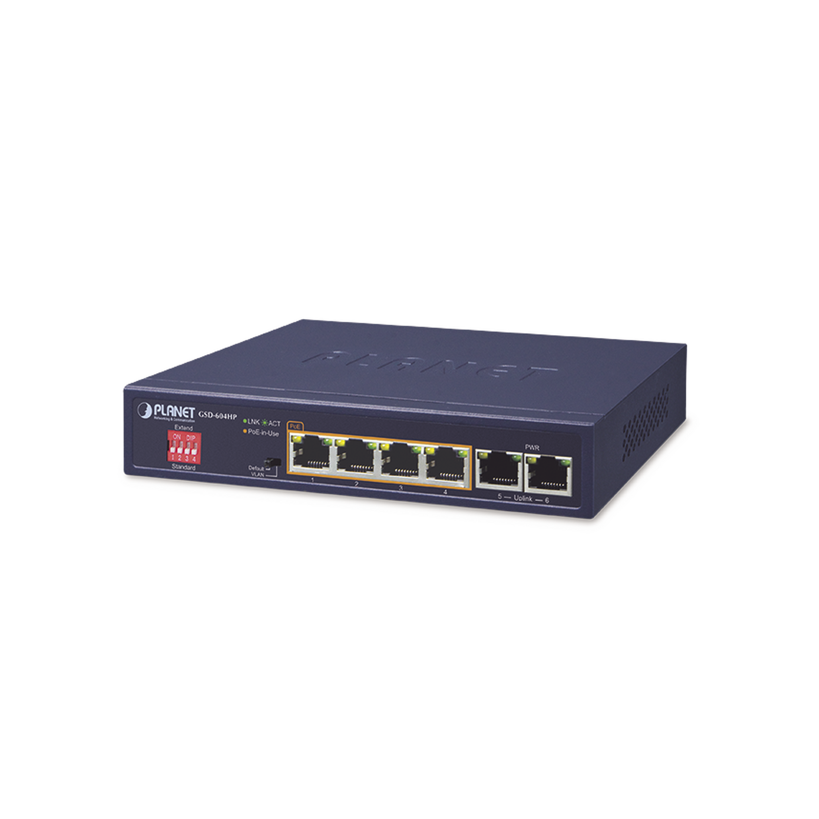 Switch No Administrable 4 Puertos 10/100/1000T 802.3at PoE + 2 Puertos 10/100/1000T de Uplink para Escritorio