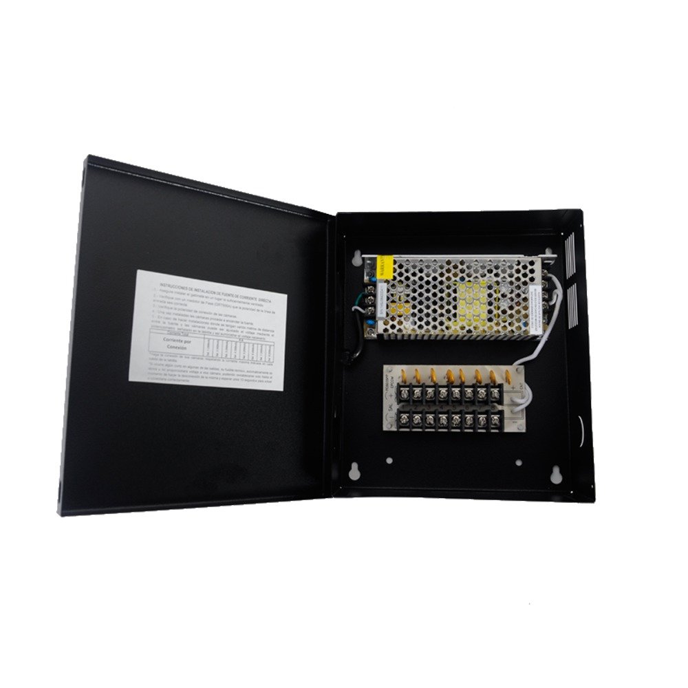 Fuente de poder profesional de CCTV de 12-13.2 Vdc @ 5 A, 8 cámaras, Voltaje de entrada: 100-240 Vca