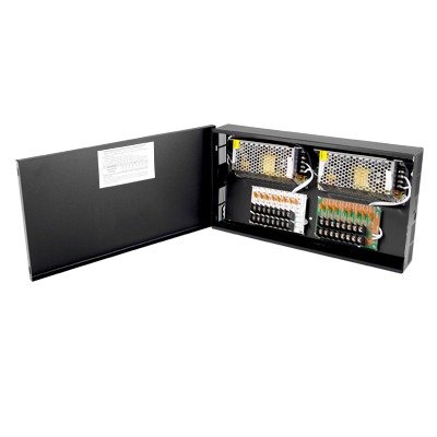Fuente de poder profesional de 24 Vca @ 15A para 16 cámaras, con voltaje de entrada en 120 Vca